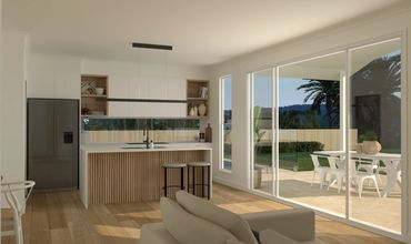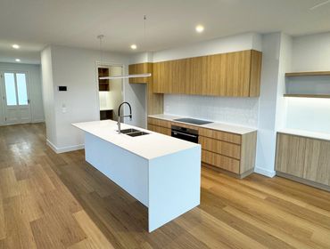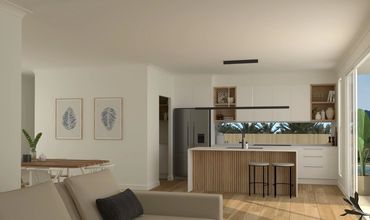 Each home boasts a custom-designed kitchen featuring a striking island bench, stone benchtop, and elegant feature lighting, seamlessly blending style and functionality — perfect for casual dining and entertaining. The kitchens are further enhanced by timber veneer walk-in pantries, offering generous storage for all your needs.